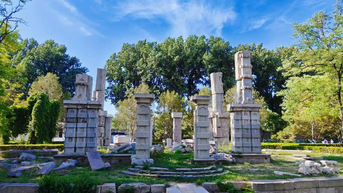 下午:前往圆明园遗址公园,参观圆明园的遗址和文物,了解圆明园的历史变迁,感受那段屈辱的历史,同时也能欣赏到园林的自然美景.-