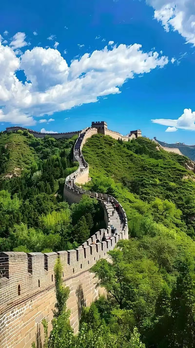 上午:前往八达岭长城,可以选择乘坐公交车、火车或参加一日游旅行团,攀登长城,欣赏壮丽的景色,体验“不到长城非好汉”的豪情.-