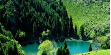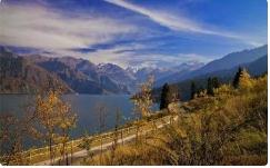 10;00 天山天池风景区古称“瑶池”,是天山博格达峰北侧的一个半月形湖泊,新疆著名的旅游胜地。湖水晶莹如玉,倒映着博格达峰,四周群山环抱,山上布满了挺拔、苍翠的云杉、塔松,漫山遍岭,风景犹如仙境。