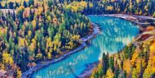 月亮湾是喀纳斯的明星景点,是卧龙湾河曲的延伸部分,美丽静谧的月亮湾会随喀纳斯湖水变化而变化,确是嵌在喀纳斯河上的一颗明珠