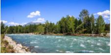 自东北向西南流淌,原始落村与大草原和谐自然的融为一体。那一栋栋的小木屋和成群结队的牧群,与雪峰、森林、草地、蓝天白云构成了独特的自然与文化景观。