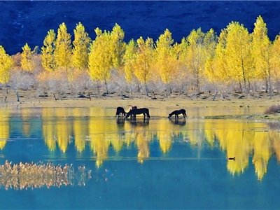 古称“瑶池”,是天山博格达峰北侧的一个半月形湖泊,新疆著名的旅游胜地。湖水晶莹如玉,倒映着博格达峰,四周群山环抱,山上布满了挺拔、苍翠的云杉、塔松,漫山遍岭,风景犹如仙境。