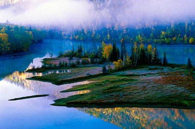 它素有“中国村”的美称。原木垒起的木屋散布村中,小桥流水,炊烟袅袅…古朴的山村景致,像喀纳斯湖一样充满神秘色彩。秀丽的禾木村,一切都充满原生态的气息。那如诗如画梦一般的美,让人留恋忘返。