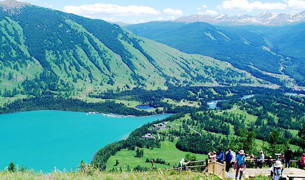 古称“瑶池”,是天山博格达峰北侧的一个半月形湖泊,新疆著名的旅游胜地。湖水晶莹如玉,倒映着博格达峰,四周群山环抱,山上布满了挺拔、苍翠的云杉、塔松,漫山遍岭,风景犹如仙境。