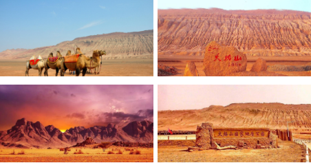 火焰山童山秃岭,寸草不生,飞鸟匿踪。每当盛夏,红日当空,赤褐色的山体在烈日照射下,砂岩灼灼闪光,炽热的气流翻滚上升,就像烈焰熊熊,火舌撩天,故名火焰山