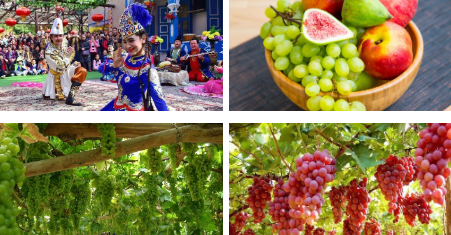 品尝当地水果、葡萄干等,欣赏并学习原生态迷人的吐鲁番风情舞蹈,一同感受维吾尔族人民葡萄架下的惬意生活,了解世界著名的葡萄故乡的异域文化。 |