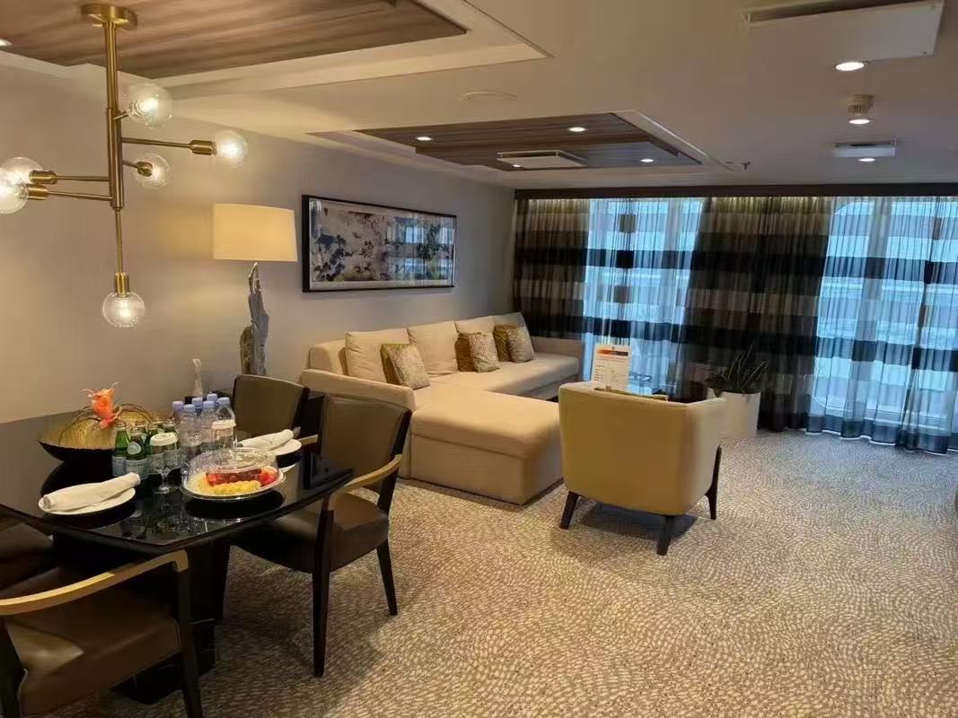 (2)邮轮部分房型可选择家庭房。鉴于普通套房及以下(家庭房)的房间面积有限,如您需要三人或四人入住一间,空间会相当拥挤,望您谅解.